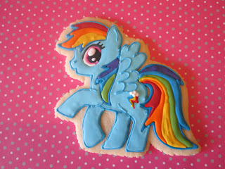 I had My Little Ponies as a kid. They have a newer version now, but seeing as I've been blessed with four boys we don't see many of them around this house. I was asked to make some cookies with three specific ponies a few weeks ago. It was fun!